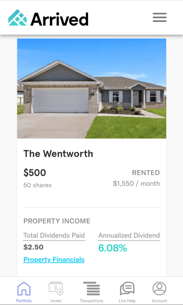 Arrived Homes is a company that buys single family homes and sells shares of the homes to the public for a quarterly dividend.